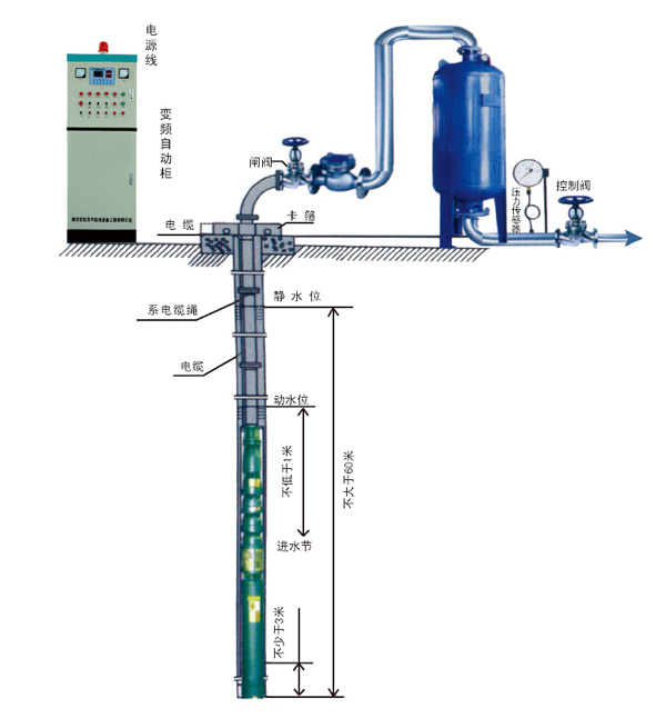 深井無塔供水設(shè)備井水加壓方案應(yīng)用于廠礦、公共建設(shè)、工地施工等水源是機(jī)井的情況。深井加壓設(shè)備變頻器具有很強(qiáng)的保護(hù)