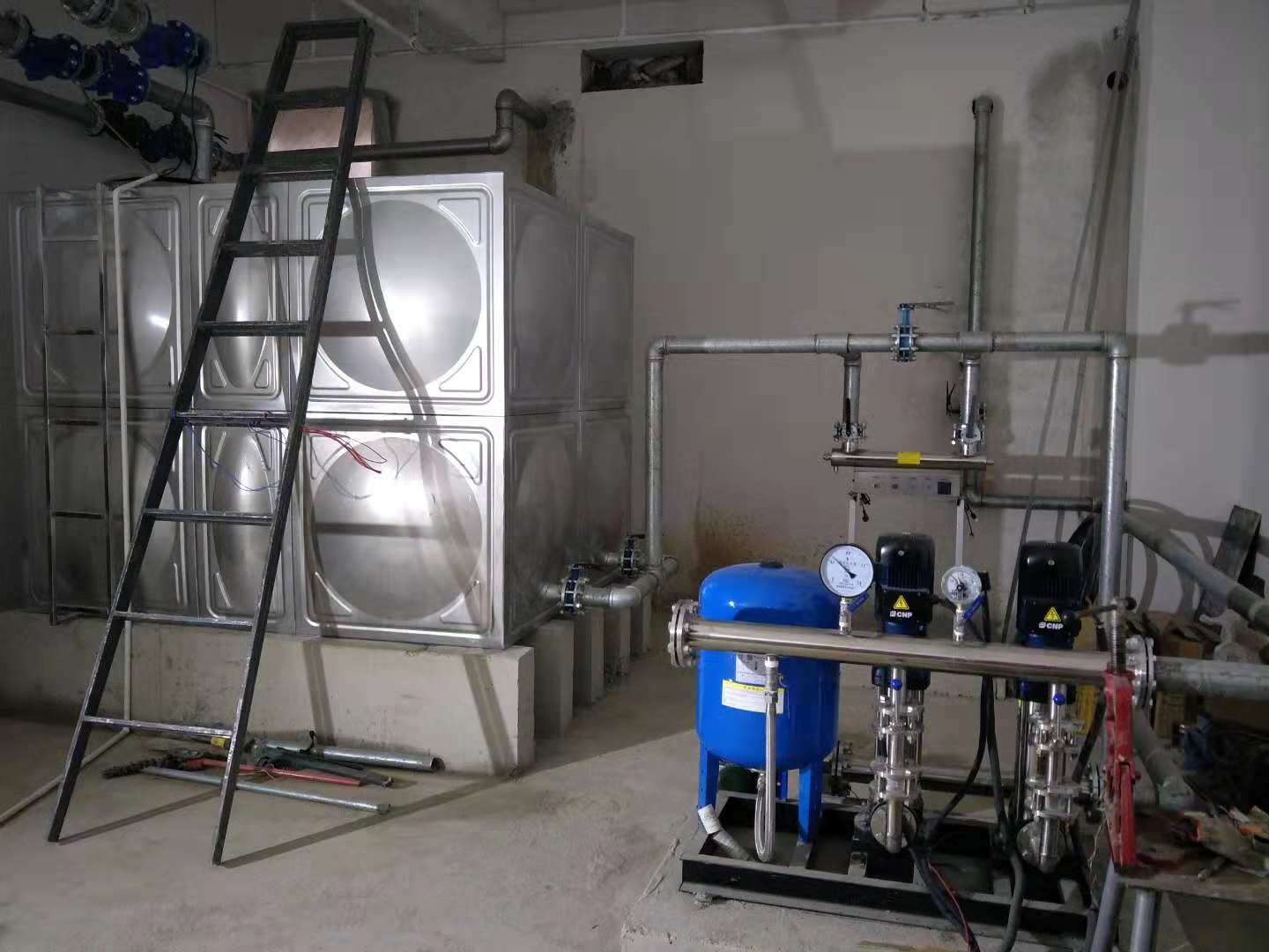 河北唐山達(dá)意科技定購(gòu)恒壓供水設(shè)備+不銹鋼水箱+紫外線消毒器